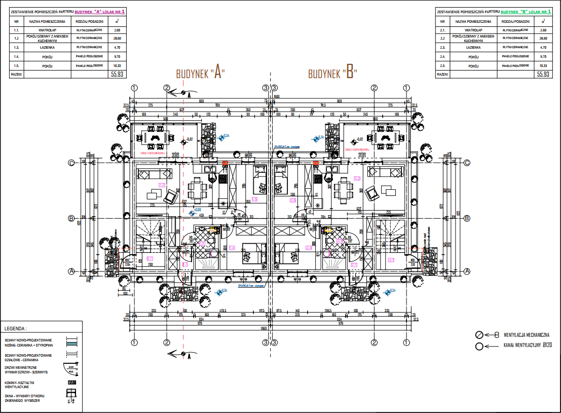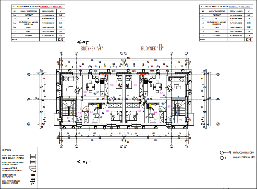 Powierzchnia użytkowa mieszkań obliczana jest zgodnie z normą PN-ISO-9836:2015-12 (w świetle ścian nośnych i działowych w stanie surowym).