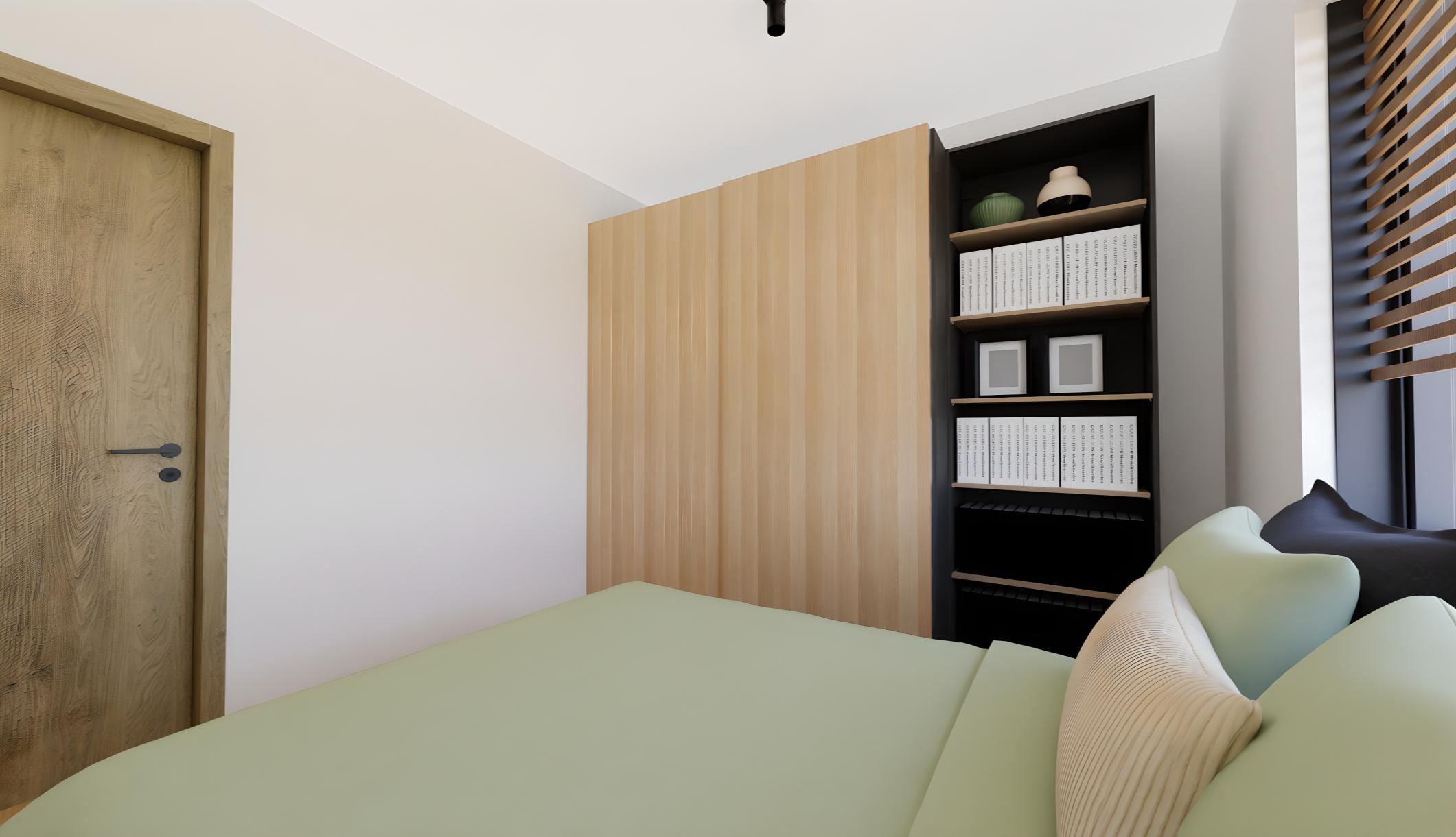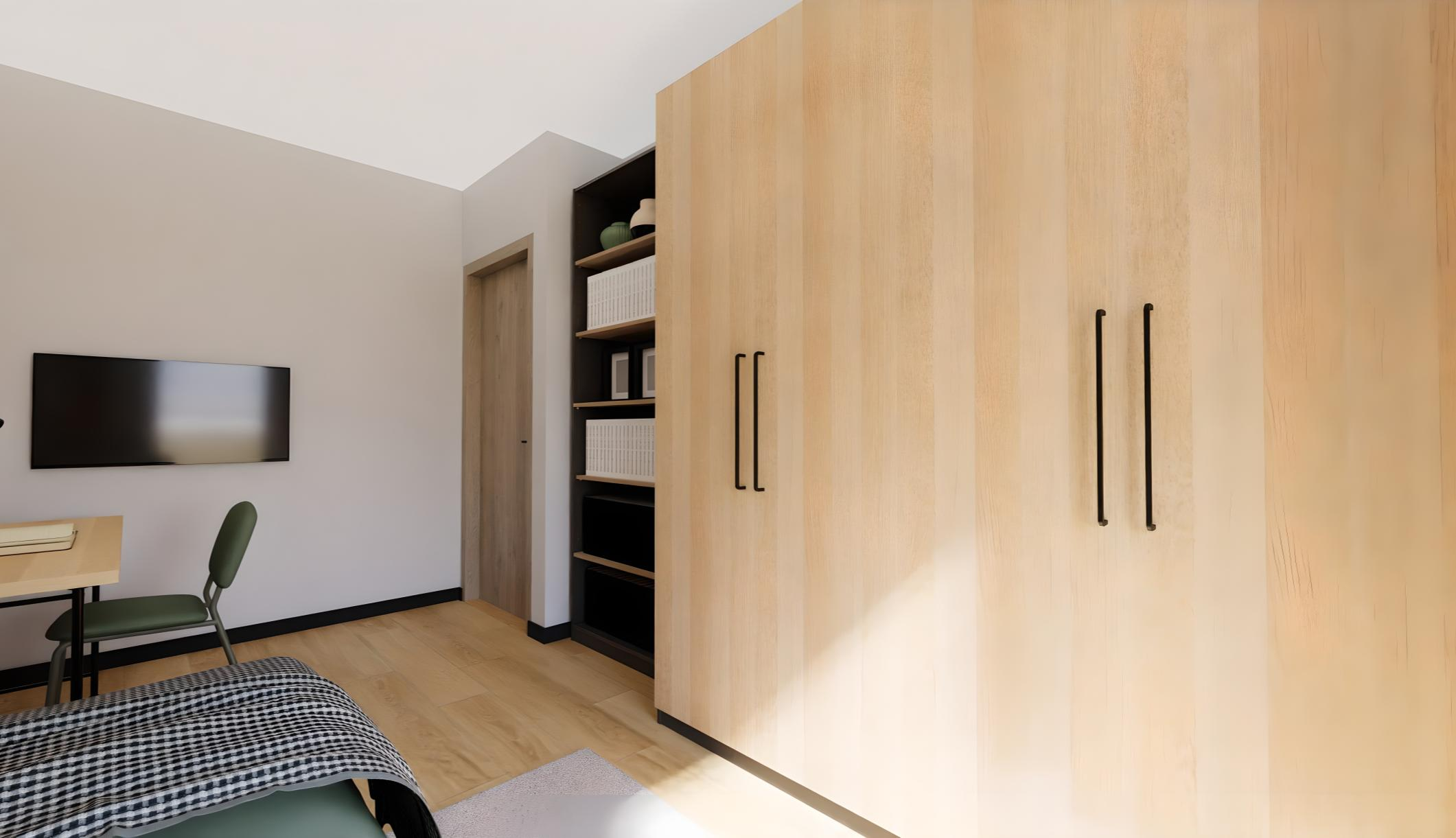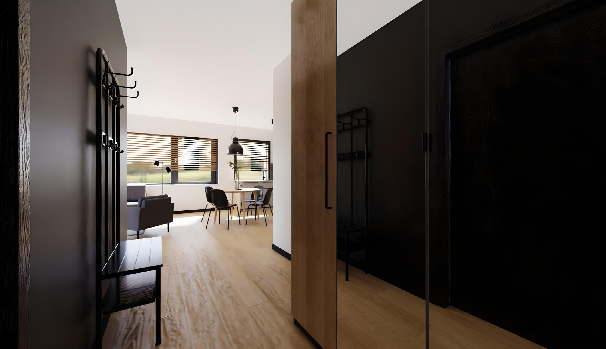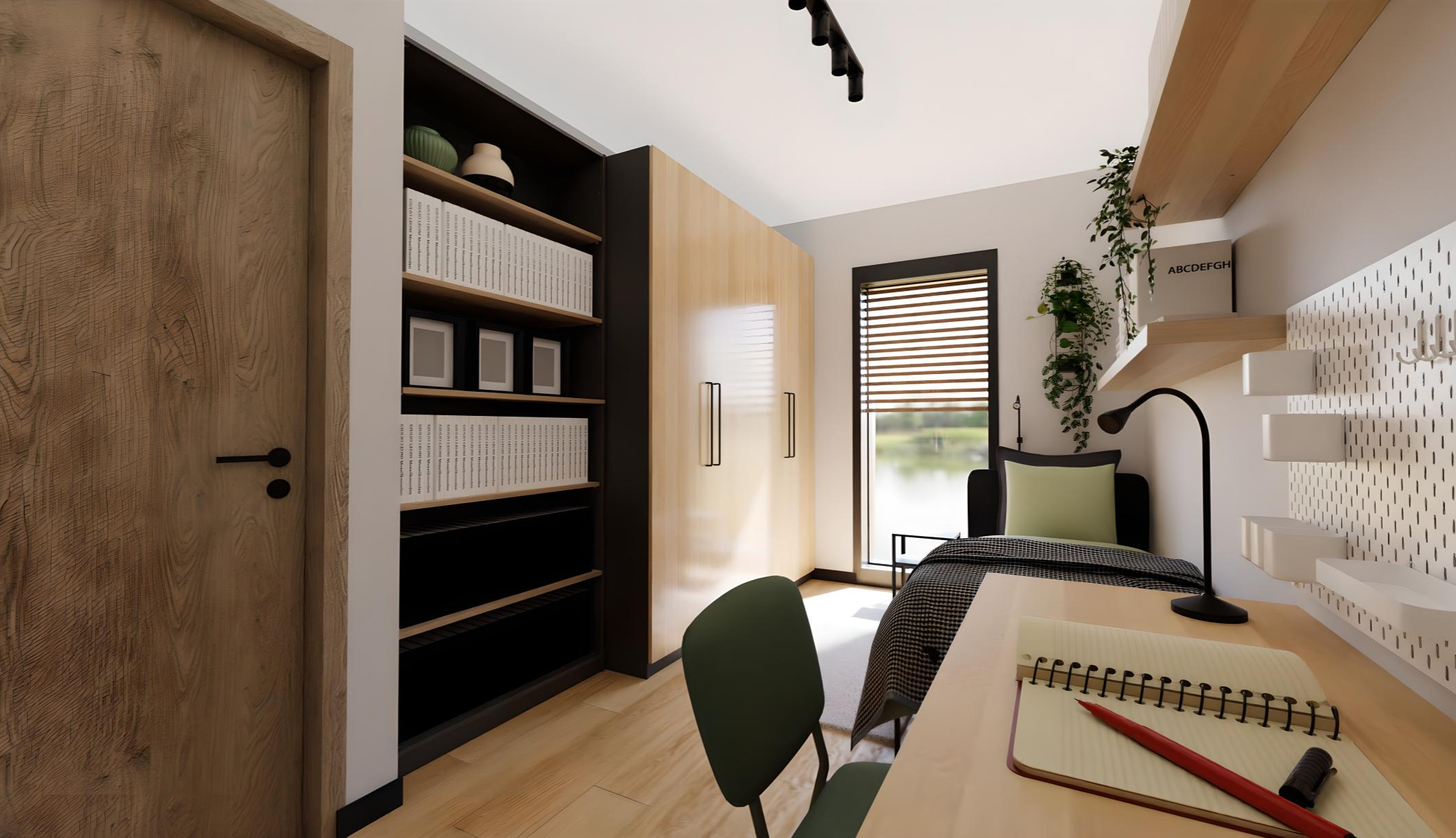 Przemyślany projekt (2 sypialnie + łazienka + salon z kuchnią) sprzyja integracji. Otwarta strefa dzienna pozwala cieszyć się kontaktem z rodziną i gośćmi nawet podczas przygotowywania posiłków.